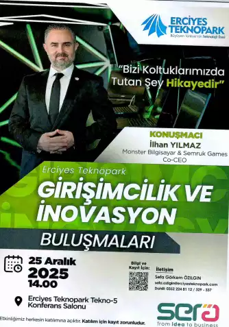 Monster Bilgisayar & Semruk Games Co-CEO'su Sayın İlhan YILMAZ'ın konuşmacı olarak yer alacağı Erciyes Teknopark Girişimcilik ve İnovasyon Buluşmaları, 25 Aralık 2025 Perşembe günü saat 14:00'de Erciyes Teknopark Tekno-5 Konferans Salonunda gerçekleştirilecektir.
