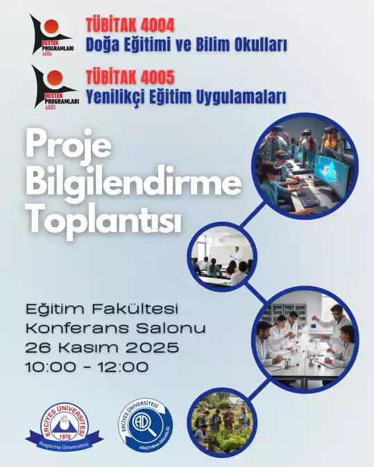 Araştırma Dekanlığı tarafından 26 Kasım 2025 günü 10:00-12:00 saatleri arasında Eğitim Fakültesi Konferans Salonunda PROJE BİLGİLENDİRME TOPLANTISI gerçekleştirilecektir.