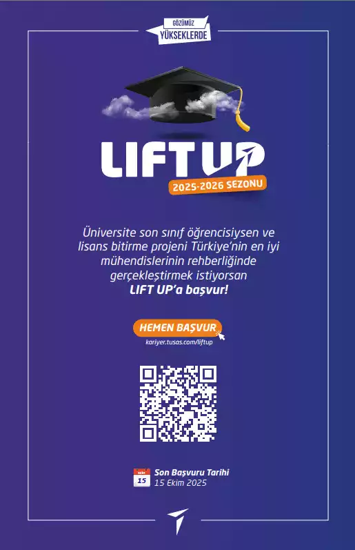 Son sınıf öğrencilerine yönelik olarak, Türk Havacılık ve Uzay Sanayii (TUSAŞ) bünyesinde yürütülen LIFT UP – Sanayi Odaklı Lisans Bitirme Projeleri Programı başvuruları 15 Ekim 2025 tarihine kadar açıktır.