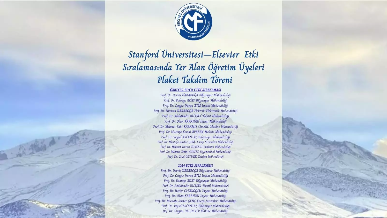 Stanford Üniversitesi tarafından Elsevier iş birliğiyle hazırlanan, dünyanın en etkili bilim insanları 2024 yılı sıralamasına göre, 2024 Etki Sıralamasında ve Kariyer Boyu Etki Sıralamasında yer alan Fakültemiz 15 öğretim üyesi için ödül töreni düzenlendi.