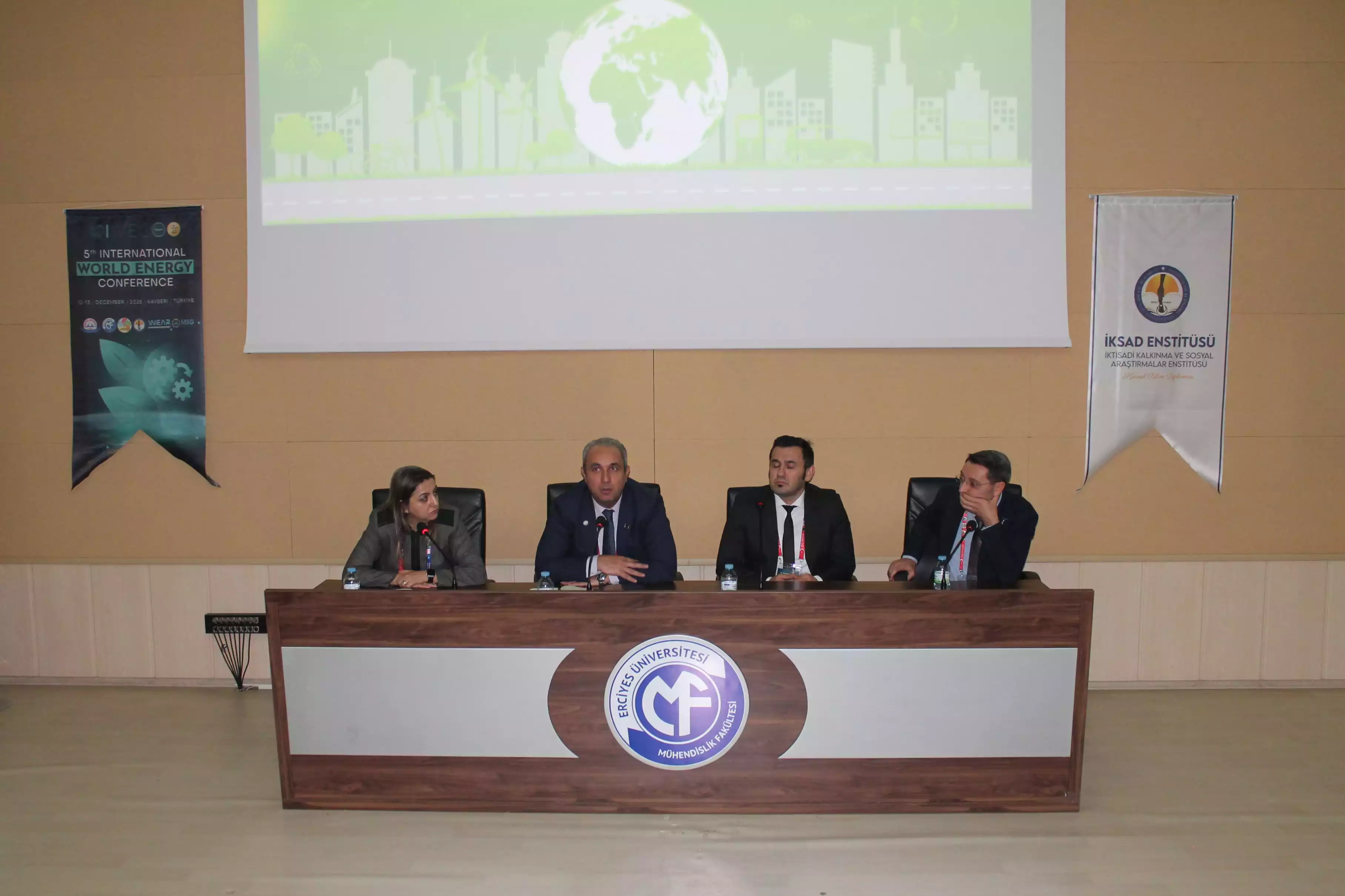 Fakültemiz Enerji Sistemleri Mühendisliği Bölüm Başkanlığı tarafından 12-13 Aralık 2025 tarihlerinde düzenlenen 5. Uluslararası Dünya Enerji Konferansında; açılış konuşmalarının ardından, TENMAK Türkiye Enerji, Nükleer ve Maden Araştırma Kurumu’ndan Radyoaktif Atık Yönetimi Koordinatörü Emrah Berat BİRSEN, ERÜ İktisadi ve İdari Bilimler Fakültesi Öğretim Üyesi Prof. Dr. Recep ULUCAK ve RHG Enertürk Enerji Yönetim ve ESG Müdürü Adem ÖZDEMİR davetli konuşmacı olarak yer aldılar. Daha sonra bildiri sunumu programlarına geçilerek konferans tamamlandı.