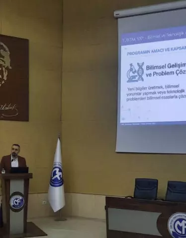 2026 dönemi TÜBİTAK 1001 projeleri ile ilgili Fen Bilimleri & Mühendislik alanına yönelik bilgilendirme sunumu, Rektör Yardımcımız Sayın Prof. Dr. Muammer Hakan POYRAZOĞLU'nun, Fakültemiz Dekanı Prof. Dr. Ahmet Alper ÖNER'in ve Üniversitemiz Araştırma Dekan Yardımcısı Doç. Dr. Özhan ŞİMŞEK'in katılımlarıyla Fakültemiz F Blok Konferans Salonunda gerçekleştirildi.
