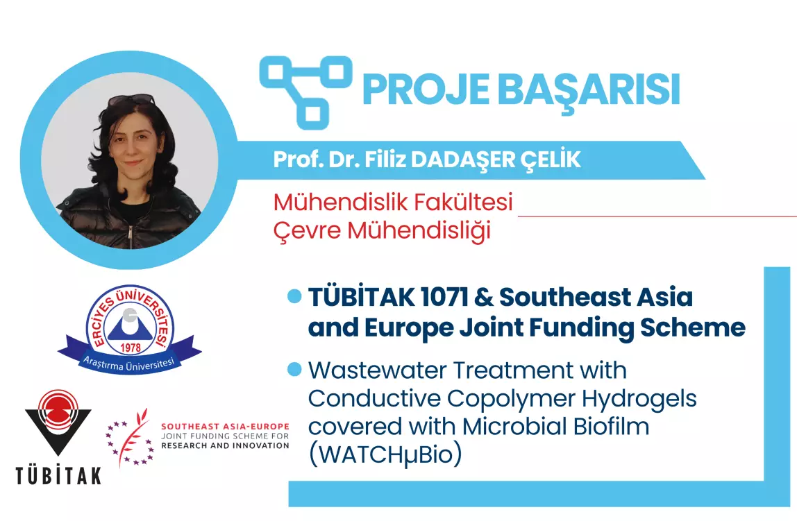 Fakültemiz Çevre Mühendisliği Bölümü öğretim üyesi Prof. Dr. Filiz DADAŞER ÇELİK’in yürütücü; Çevre Mühendisliği Bölümü öğretim üyesi Prof. Dr. Nuray ATEŞ ve Bilgisayar Mühendisliği Bölümü öğretim üyesi Doç. Dr. Mete ÇELİK’in araştırmacı olduğu, Türkiye, İsviçre ve Tayland ortaklığında hazırlanan "Wastewater Treatment with Conductive Copolymer Hydrogels covered with Microbial Biofilm (WATCHµBio)" başlıklı çoklu işbirliği projesi, "TÜBİTAK 1071 - Uluslararası Araştırma Fonlarından Yararlanma Kapasitesinin ve Uluslararası Ar-Ge İşbirliklerine Katılımın Arttırılmasına Yönelik Destek Programı" ve "Southeast Asia and Europe Joint Funding Scheme (SEA-EU JFS)" çağrısı kapsamında desteklenmeye hak kazanmıştır.